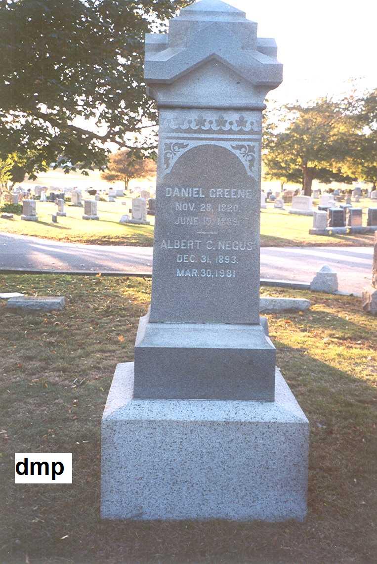 Gravestone of Daniel Greene in Rural Cemetery in New Bedford, Mass.