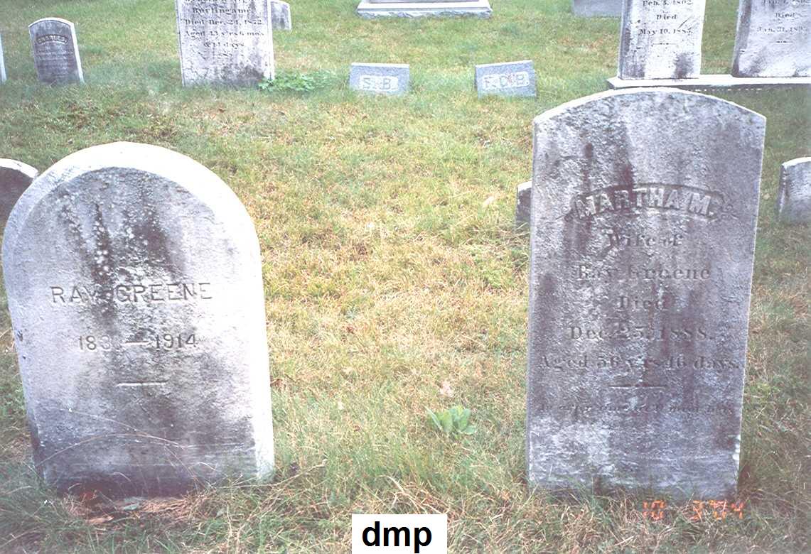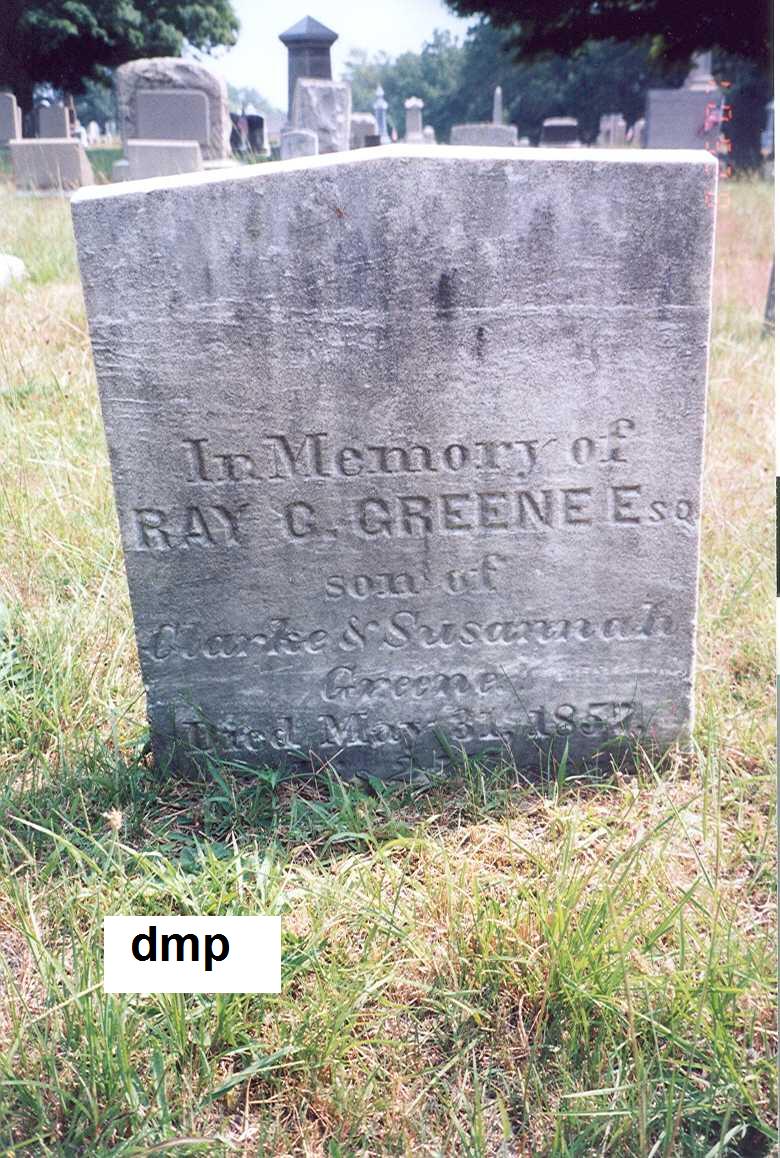 Gravestone of Hiram A. Greene son of Amos Greene and Susan R. (Hopkins) Greene in the Town Cemetery
