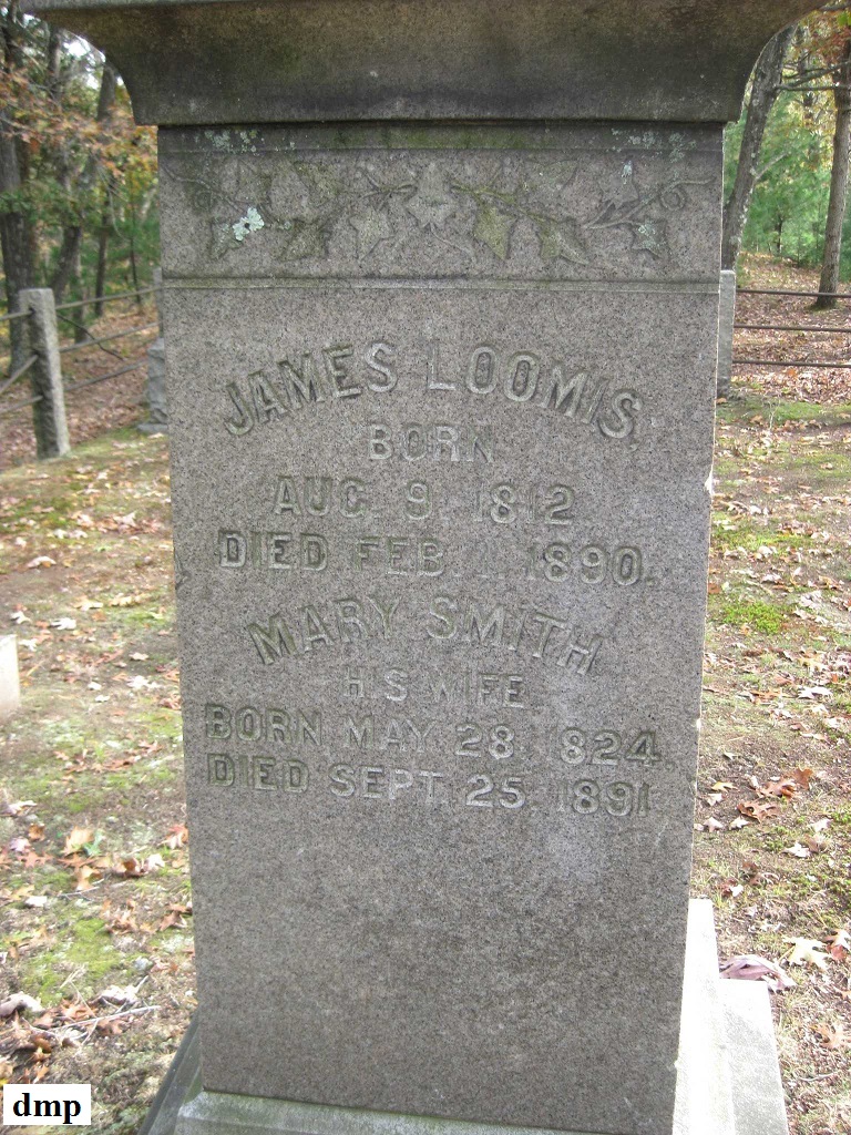 Memorial panel to James Loomis and second wife Mary (Smith) Loomis on Loomis Family Gravestone in SM038.