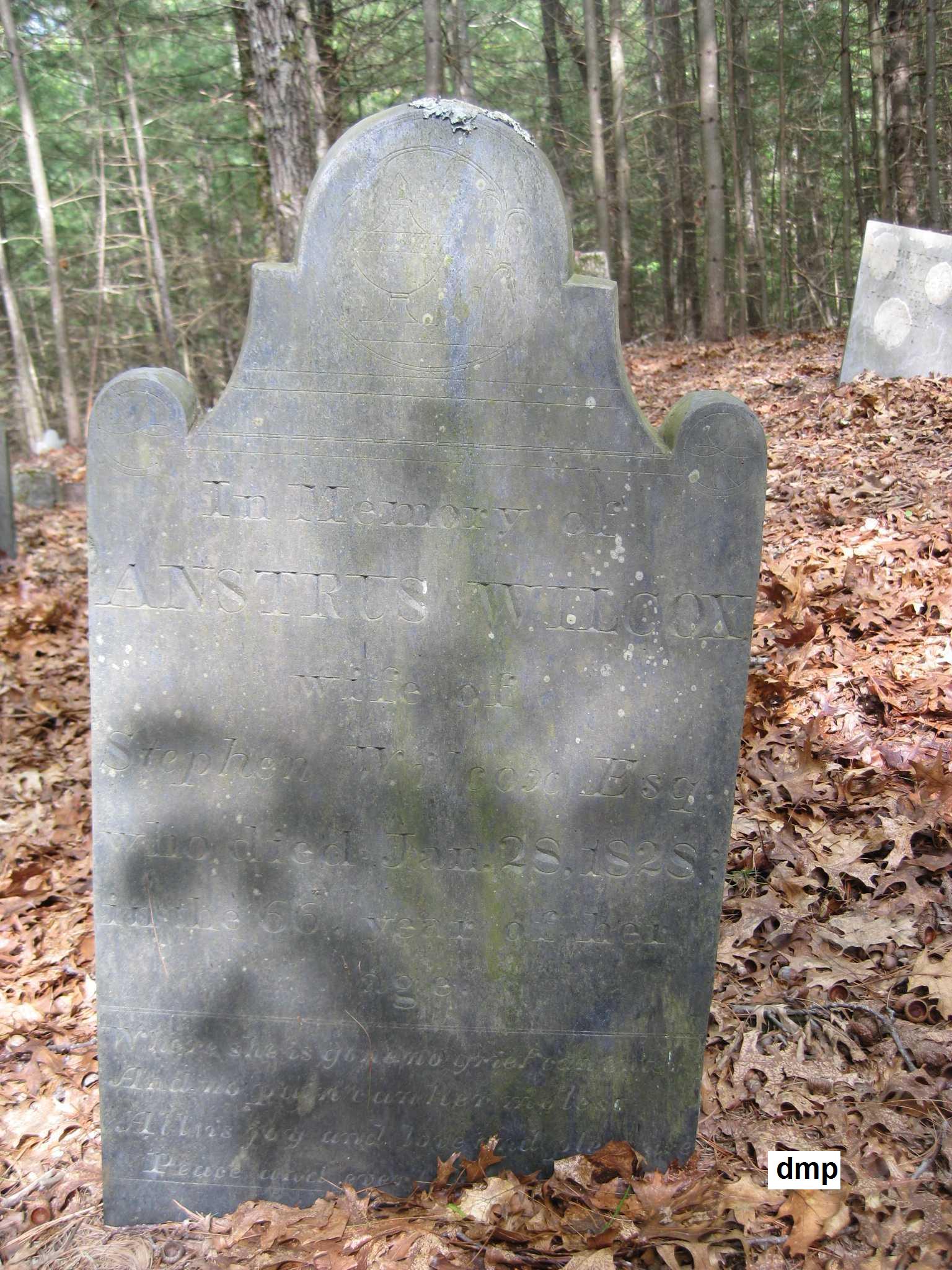 Grave of Stephen Wilcox's wife Antress (Stone) Wilcox in the Wilcox Lot (WG125).