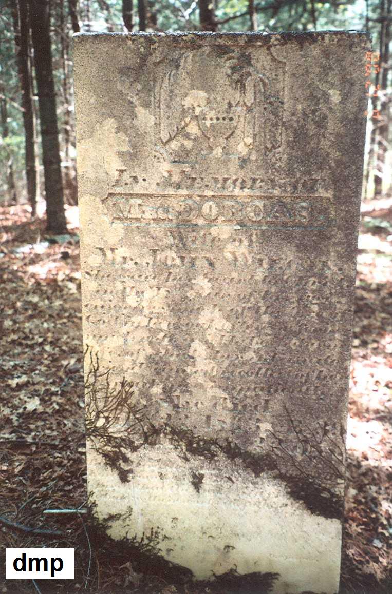 Grave of Dorcas (Tanner) Wilcox, wife of John Wilcox in the Wilcox Lot (WG125).