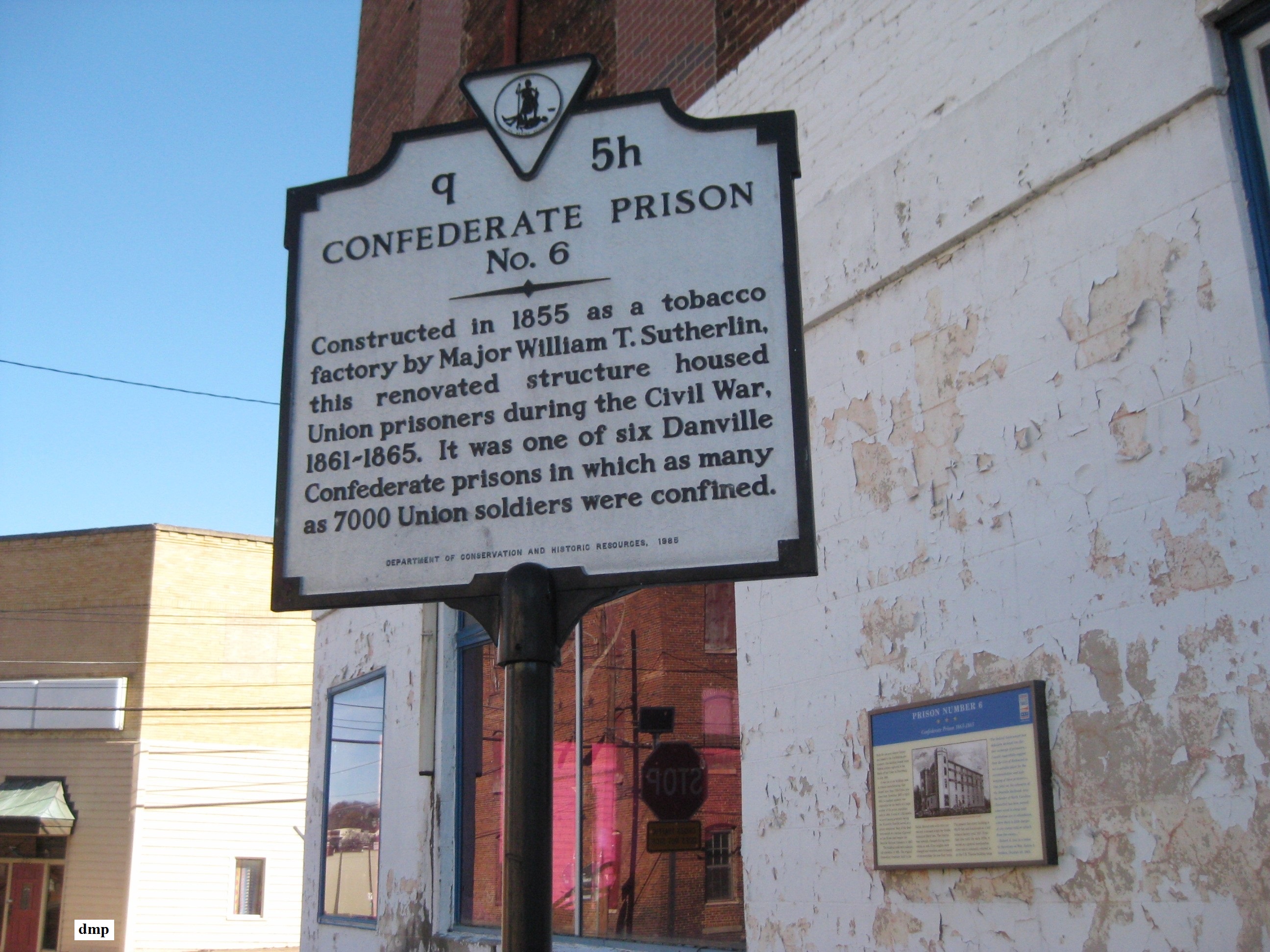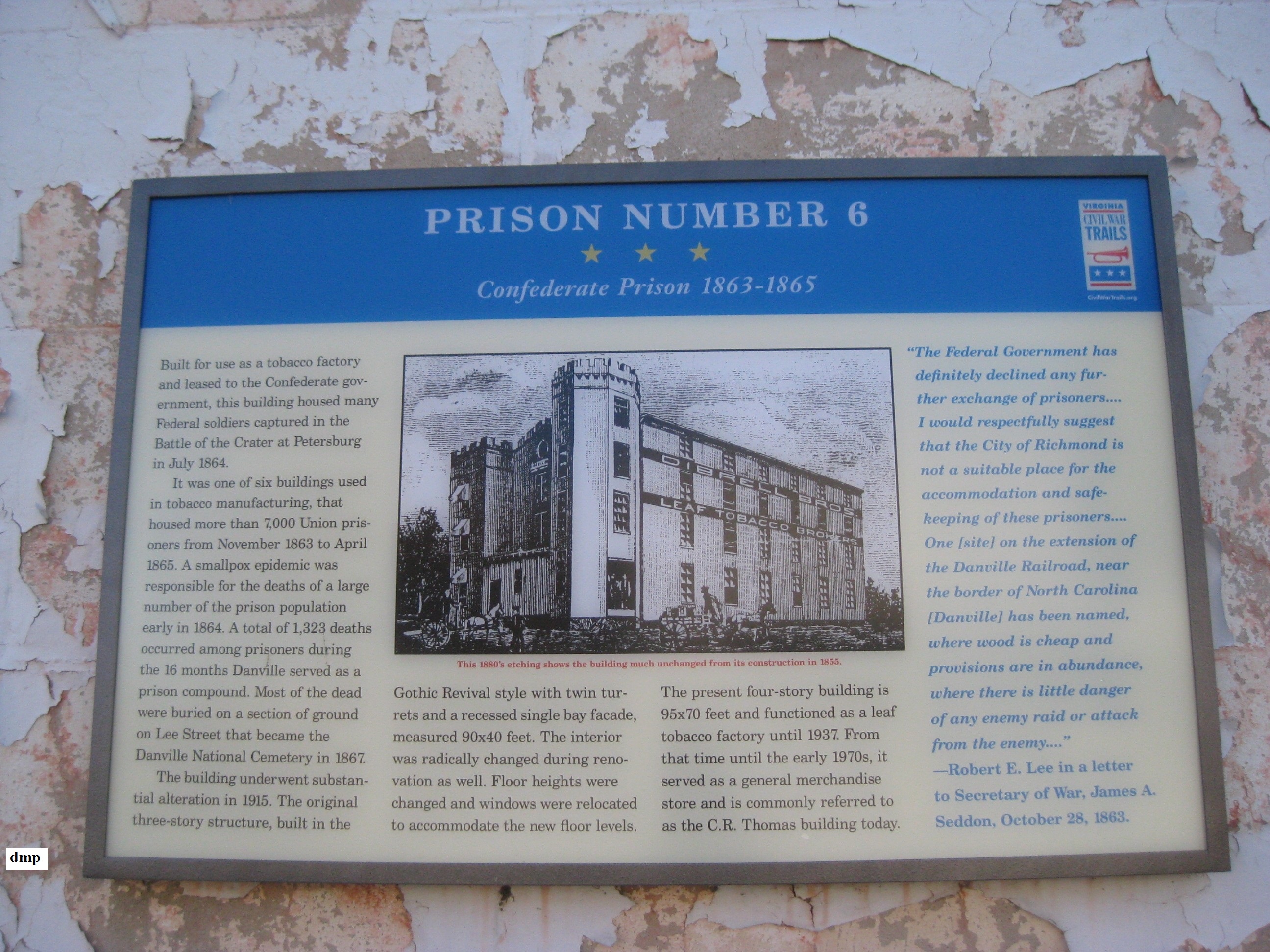 Commonwealth of Virginia Interpretive Sign for Danville Prison Number 6. Click on the image for a larger view.