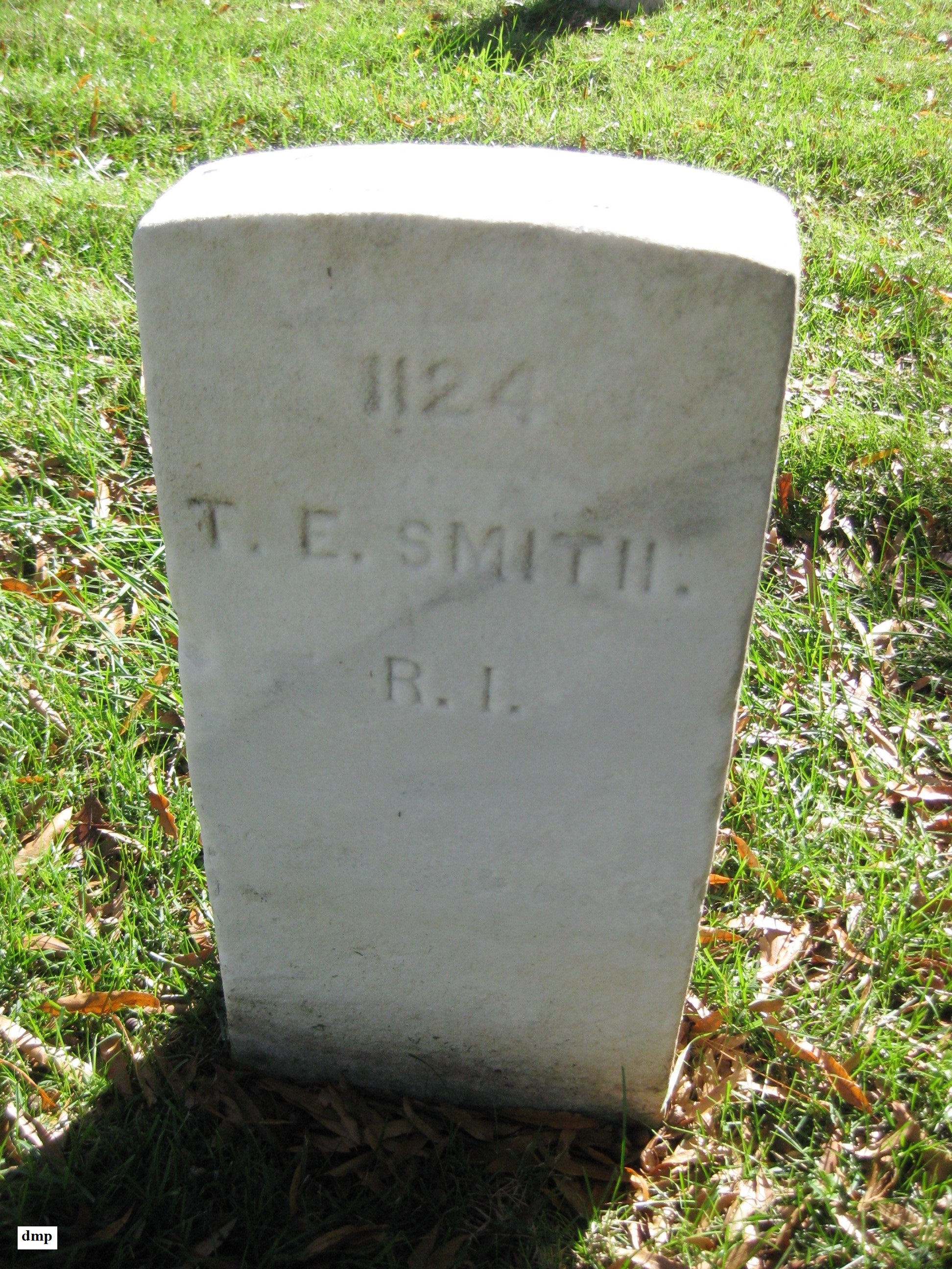 The grave of Private Thomas E. Smith Jr. of Company C, Fourth Rhode Island Regiment. Thomas' father