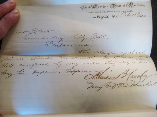 July 13, 1865 Private Edwin M. Smith musters out of the Fourth Rhode Island Regiment at Alexandria, Virginia with his "traps" or leather accoutrements and soldier's