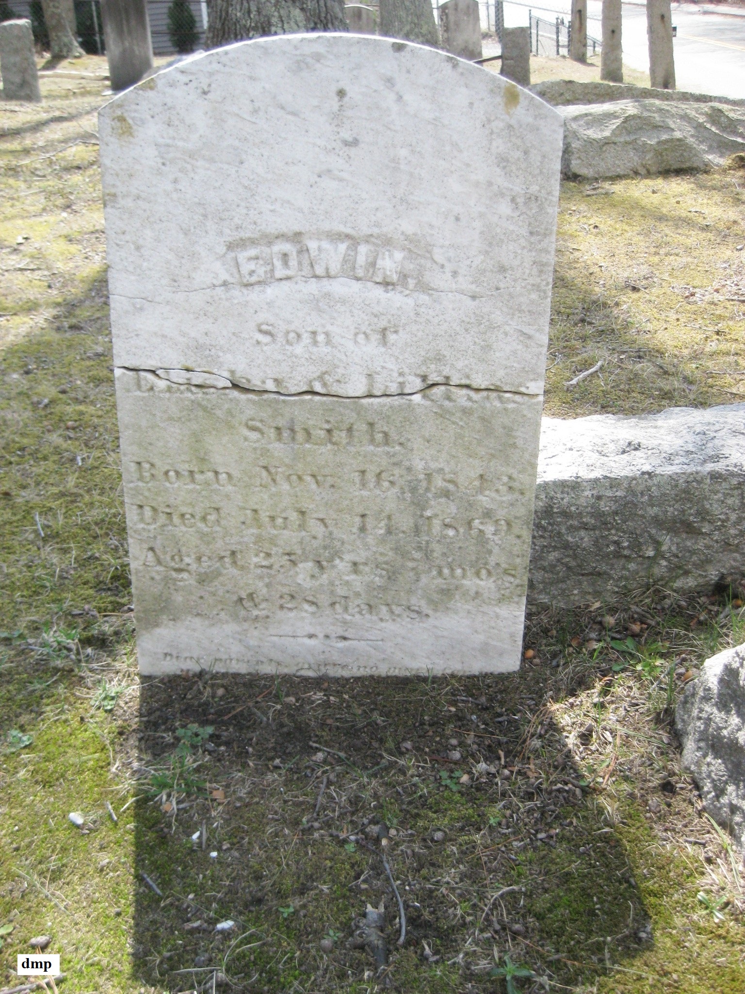 July 14, 1869 Edwin M. Smith is killed by a team of four horses in Smithfield, R.I. He was buried in the "Smith Cemetery" [SM049] in Greenville, Rhode Island next to