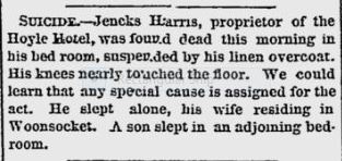 Rhode Island, at the corner of Cranston Street and Westminster Street. Jenckes died at the hotel apparently by suicide at age 51 in July 1869.