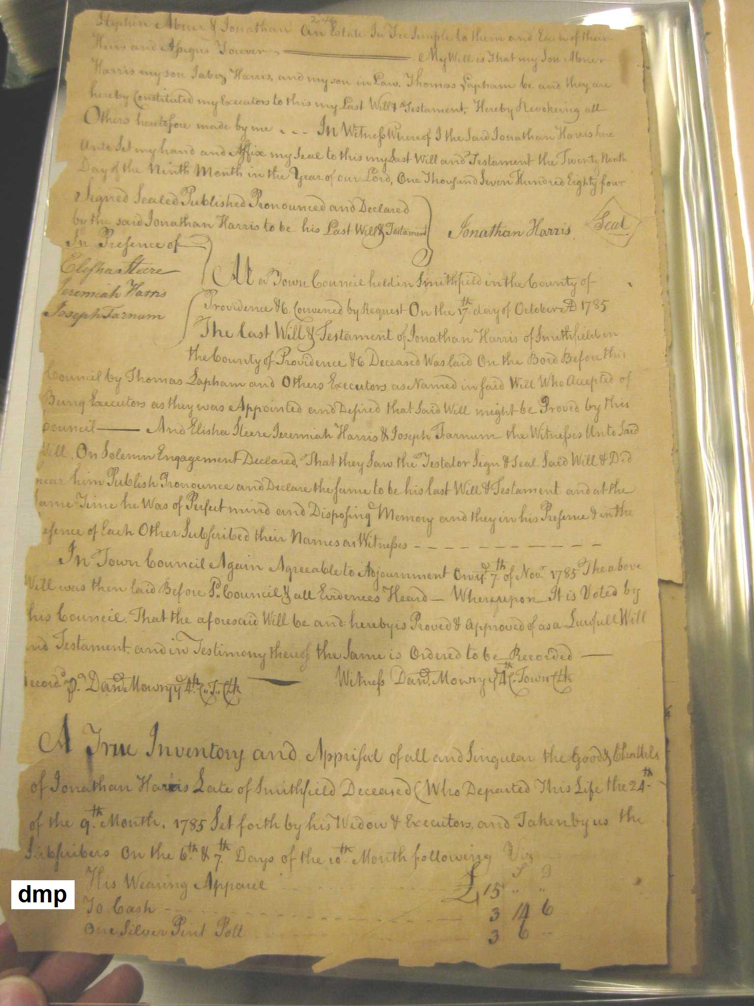 Elnathan Harris widow & relict of Mr. Thomas Harris who departed