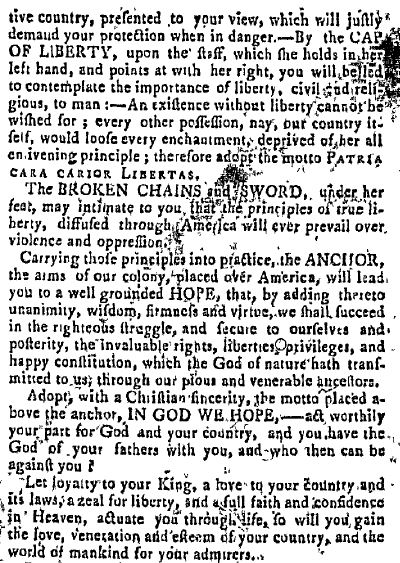 Joshua has found historical evidence that "In God We Hope" was a common motto in Rhode